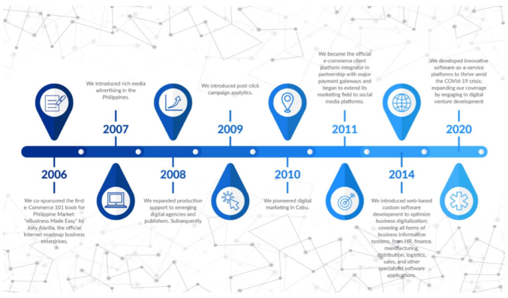 Since its establishment in 2006, TechCellar has been Web‐successenabling multiple businesses in the digital marketplace by optimizing operational efficiency [Digitization and Optimization], brand focus and web presence [Digital Marketing], and web business analytics [Business Insights and Digital Transformation]; with clients ranging from high traffic news publishing and community websites, digital ad agencies, pure online commerce, major real estate firms, tourism establishments, consumer goods distribution, retail, and various service businesses both in the Philippines and abroad.